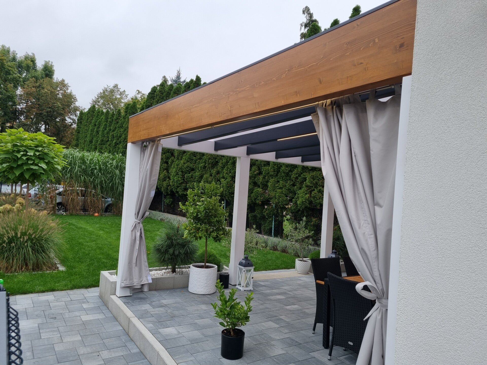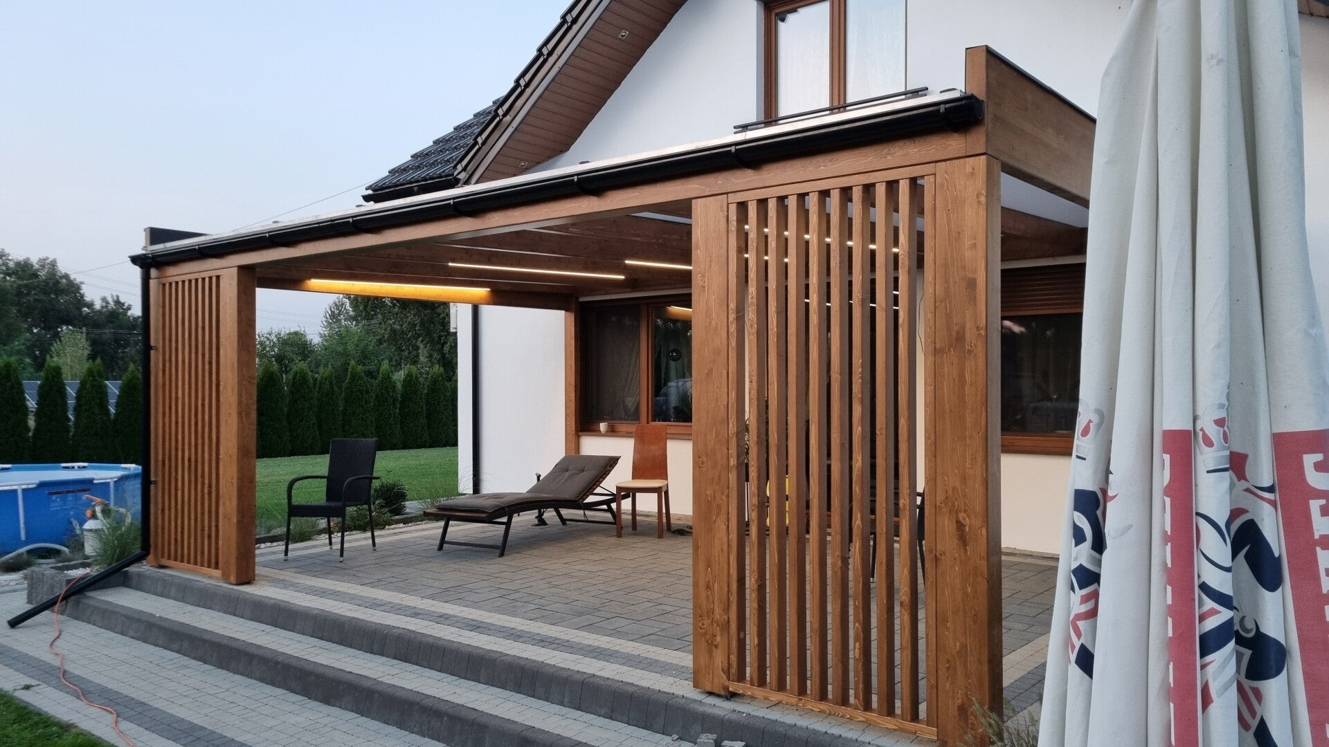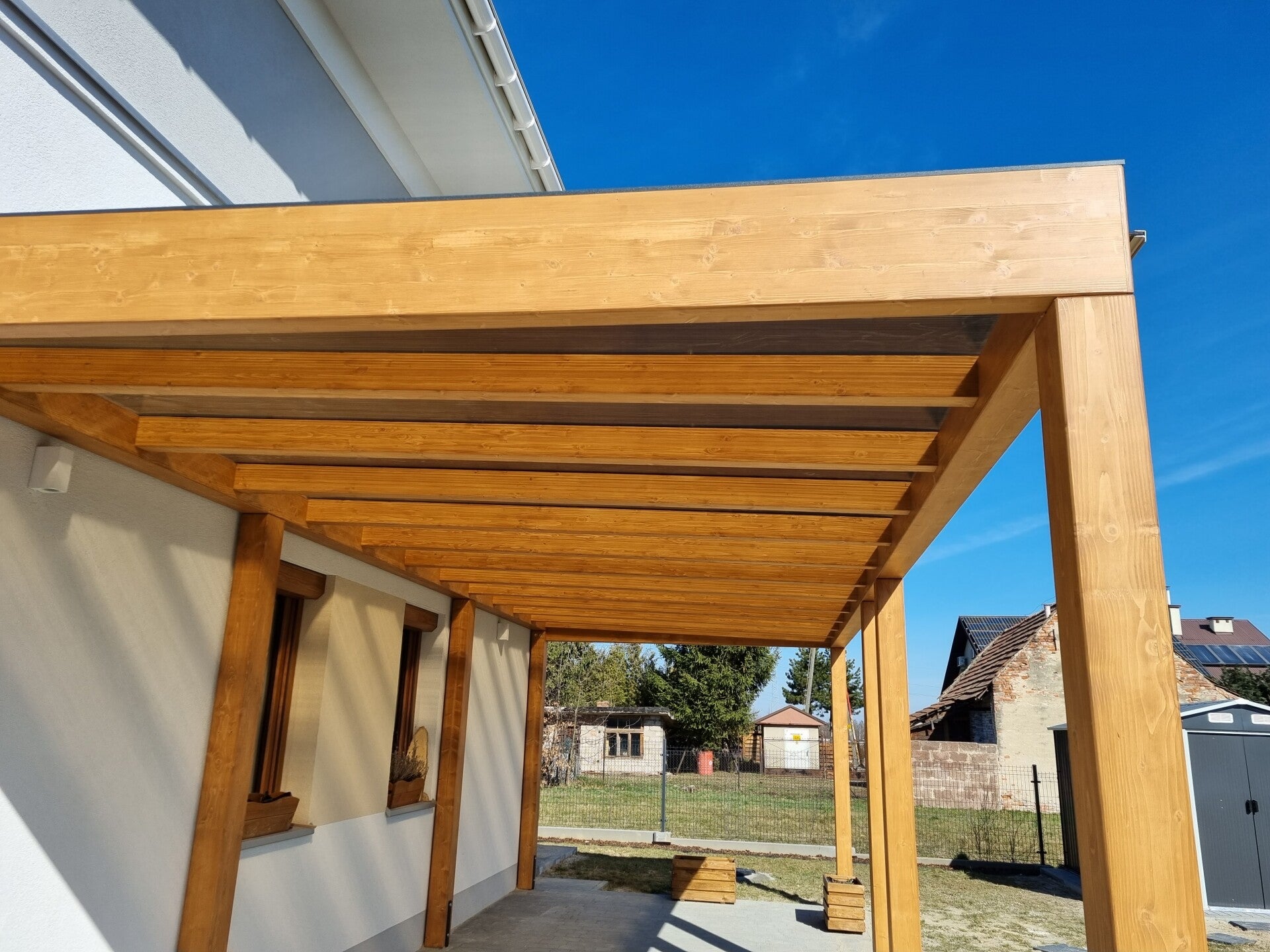W M&S zadaszenia tarasowe z dumą prezentujemy nasze ukończone projekty, które są świadectwem naszego zaangażowania w jakość i innowacyjność. Każda realizacja to połączenie solidnego drewna klejonego BSH, estetycznych grubych belek, nowoczesnego oświetlenia LED oraz funkcjonalnych rozwiązań takich jak rolety, shuttersy czy zabudowa aluminiowa. Kładziemy nacisk na minimalistyczny styl, by Twoja przestrzeń zyskała bezpieczeństwo i komfort, na który zasługujesz.