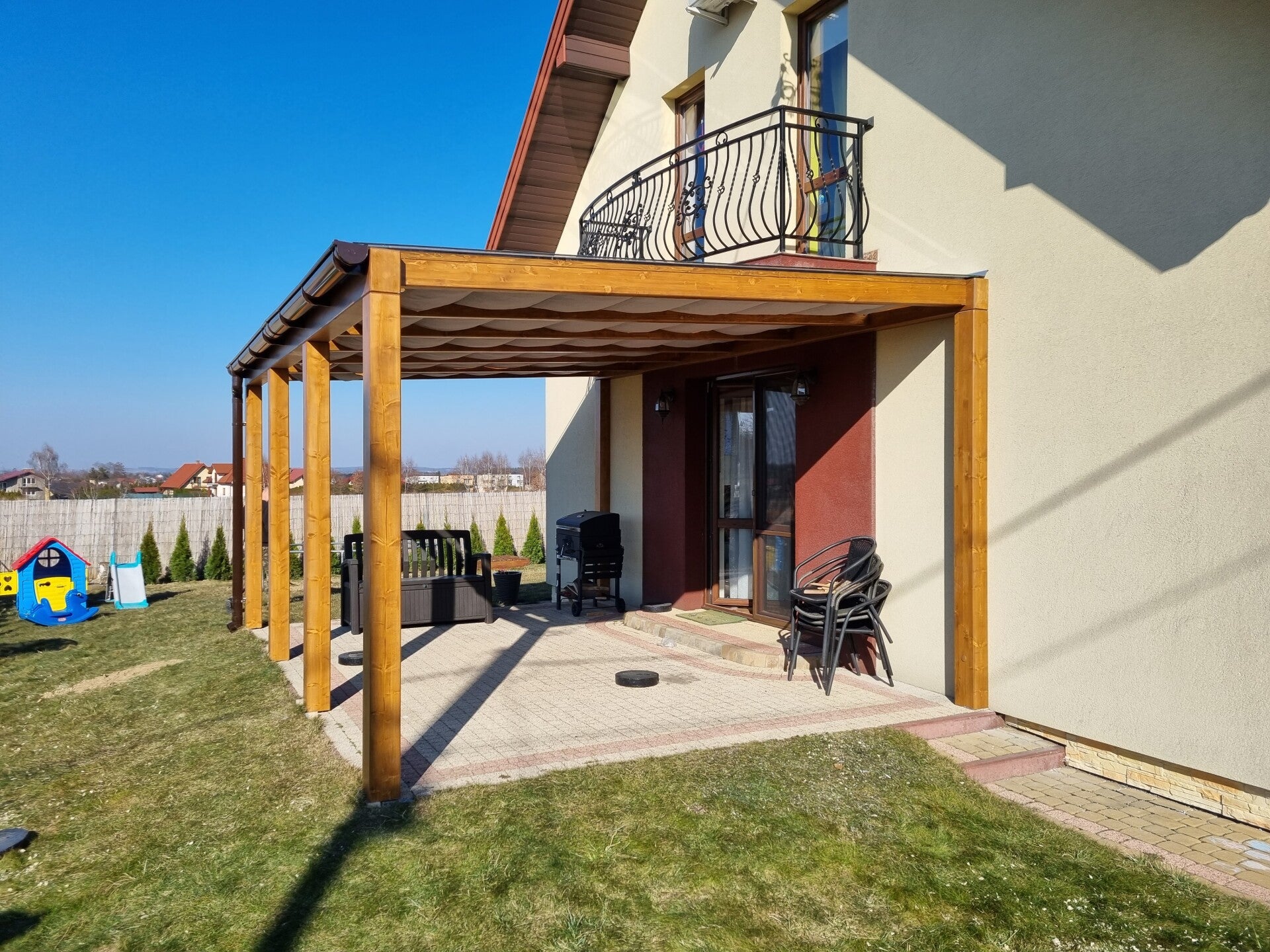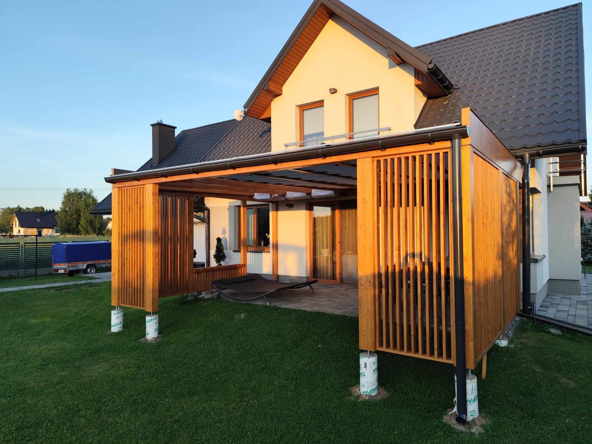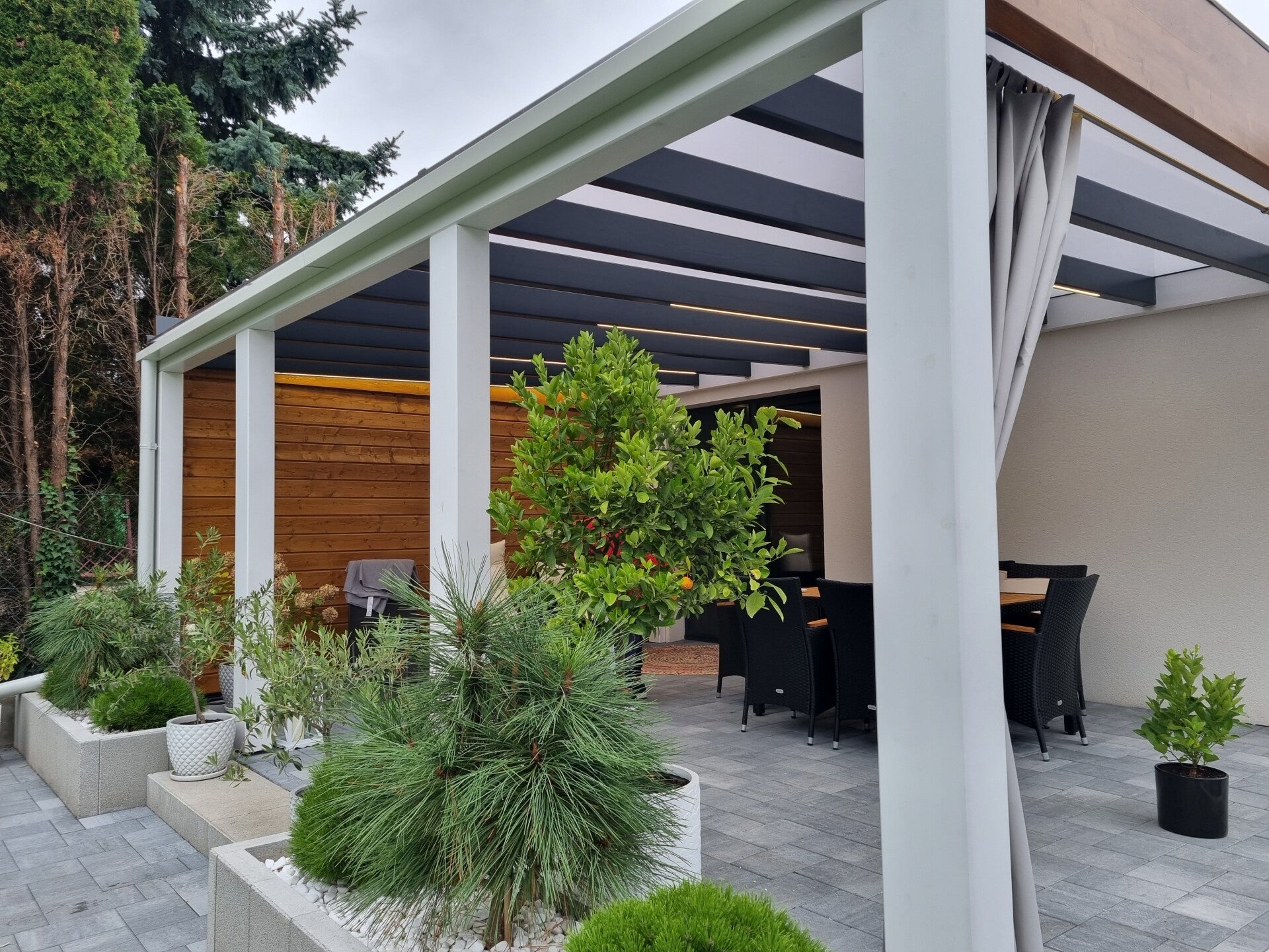 W M&S zadaszenia tarasowe z dumą prezentujemy nasze ukończone projekty, które są świadectwem naszego zaangażowania w jakość i innowacyjność. Każda realizacja to połączenie solidnego drewna klejonego BSH, estetycznych grubych belek, nowoczesnego oświetlenia LED oraz funkcjonalnych rozwiązań takich jak rolety, shuttersy czy zabudowa aluminiowa. Kładziemy nacisk na minimalistyczny styl, by Twoja przestrzeń zyskała bezpieczeństwo i komfort, na który zasługujesz.